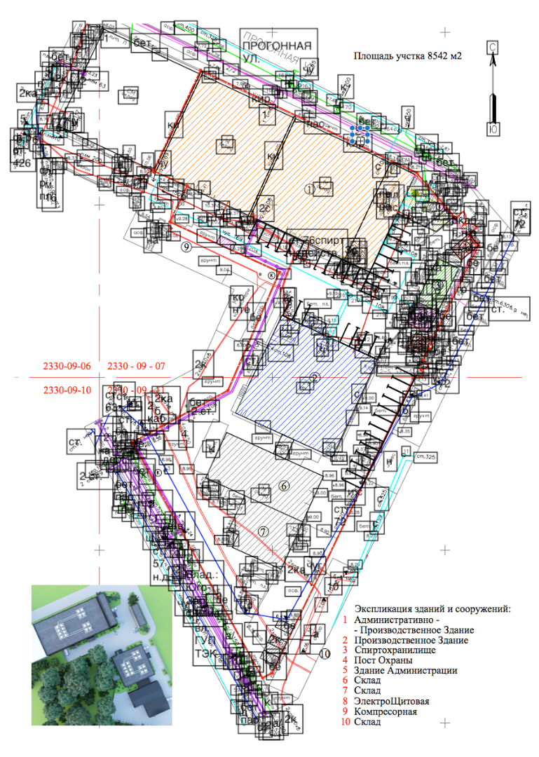 На экспликации указано расположение здании и сооружении: