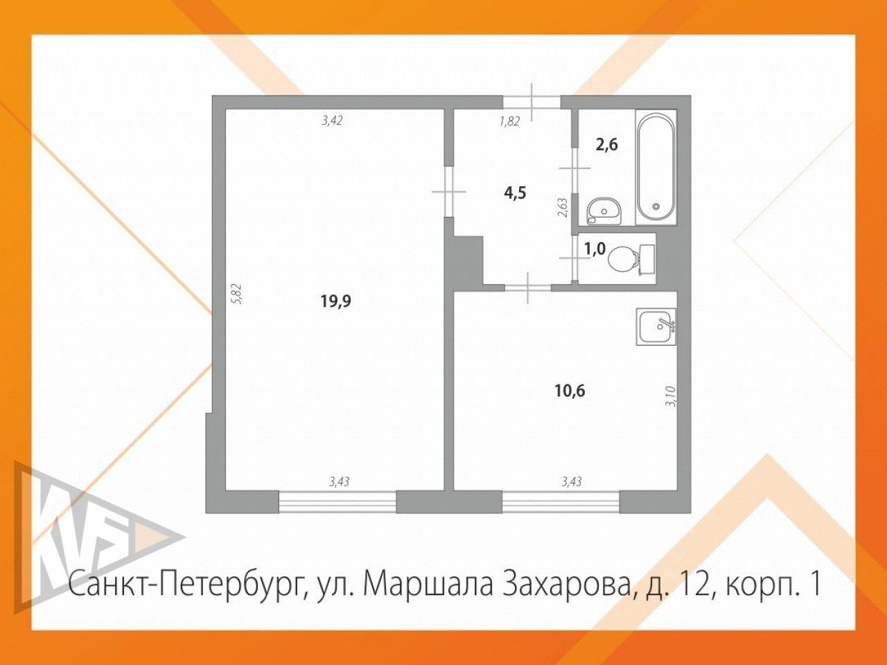 1-к кв. Санкт-Петербург ул. Маршала Захарова, 12к1 (38.6 м²)