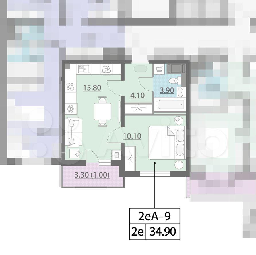 1-к квартира, 34.9 м², 23/26 эт.